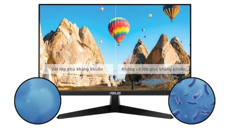 Một trong những ưu điểm của màn hình Asus VY279HE là thiết bị đã được tích hợp tính năng điều trị kháng khuẩn lâu dài. Điều này sẽ giúp cho phần viền và phím nóng trên màn hình có thể kháng khuẩn với ion bạc giúp ngăn chặn và giảm tỉ lệ bám dính của vi khuẩn lên đến 99.9%. Chính vì thế, các khu vực quan trọng mà người dùng hay chạm đến sẽ luôn được vệ sinh sạch sẽ và giảm khả năng lây lan của vi khuẩn có hại.