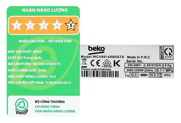 Bình luận về Beko Inverter 8 kg WCV8614XB0STS