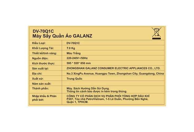 Máy sấy thông hơi Galanz 7 kg DV-70Q1C