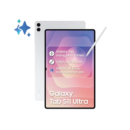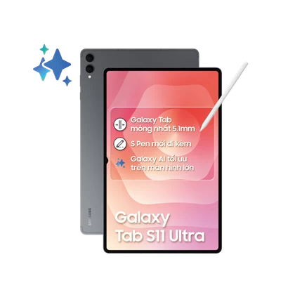Samsung Galaxy Tab S11 Ultra 5G 12GB/256GB có thiết kế cao cấp, hiệu năng mạnh mẽ và hàng loạt tính năng tiên tiến, hứa hẹn mang đến trải nghiệm đột phá. Máy sở hữu màn hình siêu lớn 14.6 inches, hiển thị sắc nét và sống động. Cấu hình mạnh mẽ với RAM 12GB, ROM 256GB, chip đồ họa Immortalis-G925 và chạy hệ điều hành Android 16 cùng giao diện tùy biến One UI 8 mới nhất. Ngoài ra, viên pin dung lượng 11600 mAh kết hợp công nghệ sạc nhanh 45W đảm bảo thời lượng sử dụng ấn tượng, giúp bạn luôn sẵn sàng kết nối và sáng tạo mọi lúc, mọi nơi.