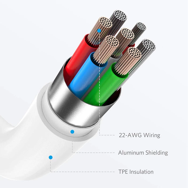 Mỗi sợi cáp được gia cố bằng sợi tổng hợp bulletproof. Đây là vật liệu chủ yếu để sản xuất áo giáp chống đạn. Anker là công ty đầu tiên trên thế giới sử dụng vào sản xuất cáp điện thoại.