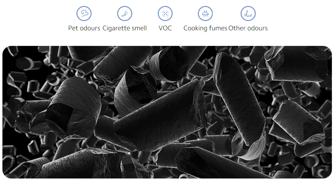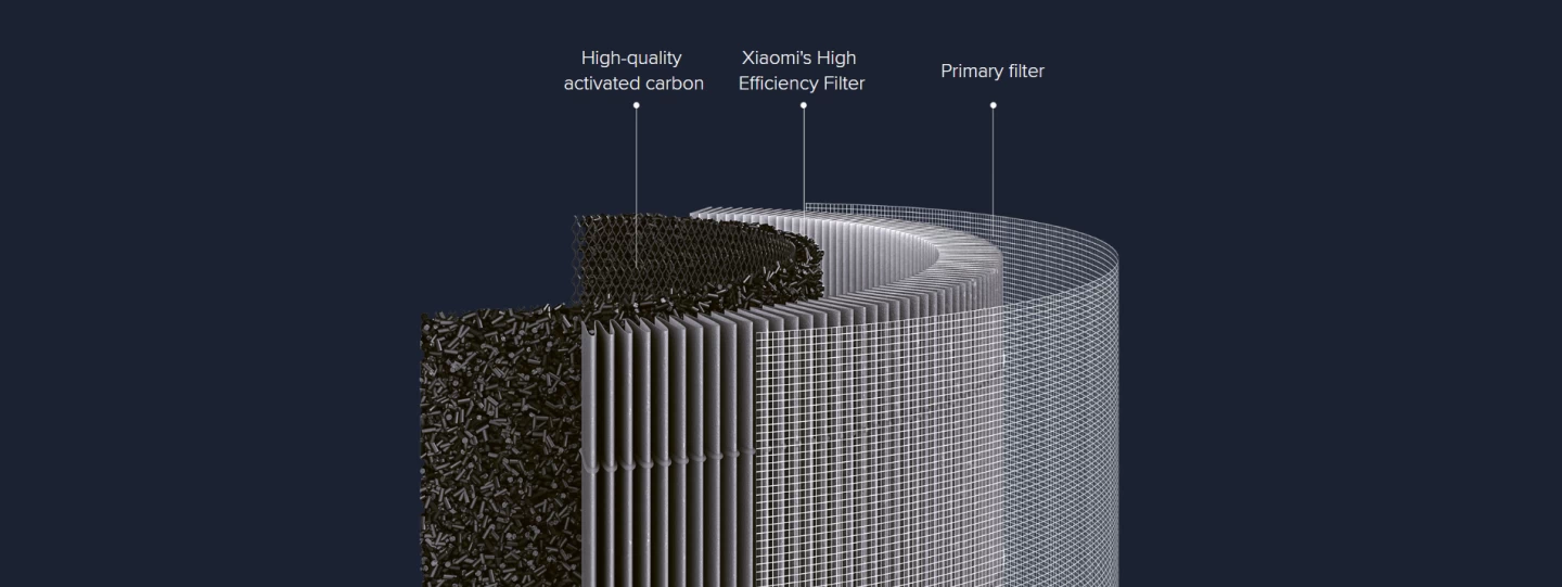 Lớp cuối cùng được làm bằng than hoạt tính chất lượng cao giúp hấp thụ formaldehyde và các hóa chất độc hại khác, cũng như có thể khử mùi hôi. Lõi lọc thay thế Xiaomi Smart Air Purifier 4 Filter Filter sử dụng lõi lọc than hoạt tính dạng cột đa khẩu độ chất lượng cao 500000mg, với cấu trúc lỗ xốp li ti và cacbon phân bổ đều trong cấu trúc lớp lọc dạng tổ ong, loại bỏ hiệu quả các chất ô nhiễm không khí và mùi hôi khó chịu trong nhà bạn.