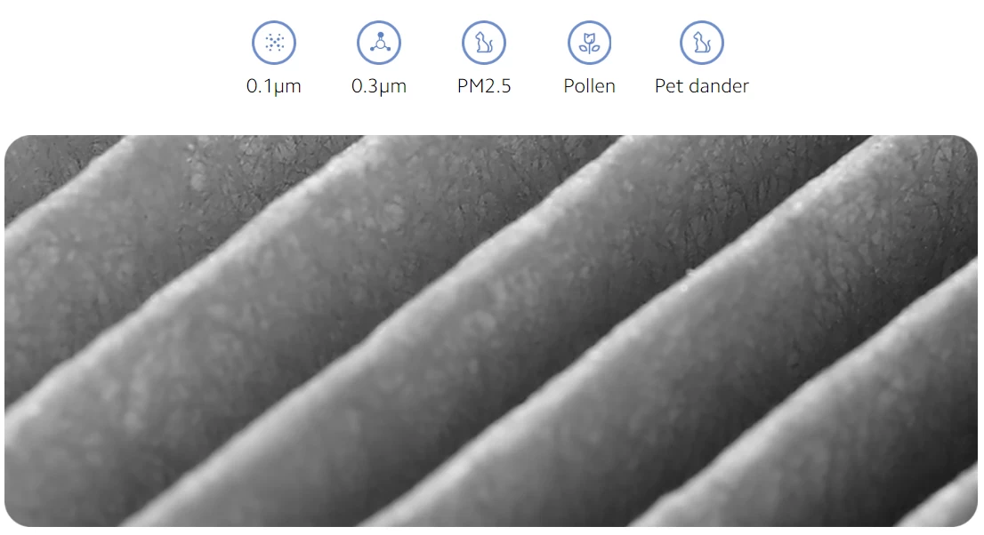 Lớp thứ hai là bộ lọc HEPA cấp H13 lọc hạt có đường kính 0,3 micromet trở lên với khả năng lọc 99,97% các hạt 0,3 micromet. Bộ lọc hiệu quả cao 22000cm², loại bỏ PM2.5, phấn hoa, khói, vẩy da thú cưng, phấn hoa và thậm chí cả vi khuẩn gây bệnh…để tạo chất lượng không khí nhất quán.
