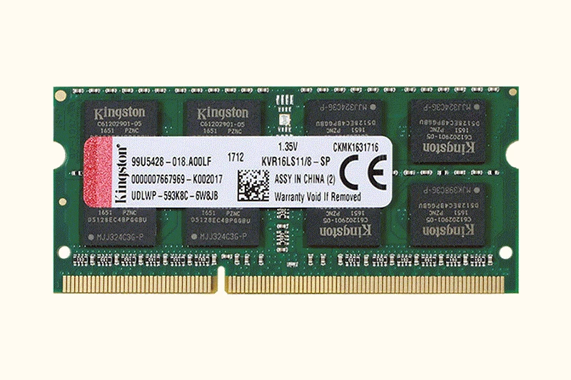 RAM Laptop Kingston 8GB DDR3 1600MHz sử dụng chuẩn RAM DDR3 cùng với dung lượng bộ nhớ tiêu chuẩn 8GB. Đây là dung lượng được coi là cần được trang bị trong năm 2022 và có thể là trong một đến hai năm tới. Dung lượng 8GB sẽ giúp thiết bị có thể dễ dàng xử lý đa nhiệm hơn. Tốc độ bus cao cũng là một điểm ấn tượng của RAM mà mình sẽ nói rõ hơn ở phần sau.