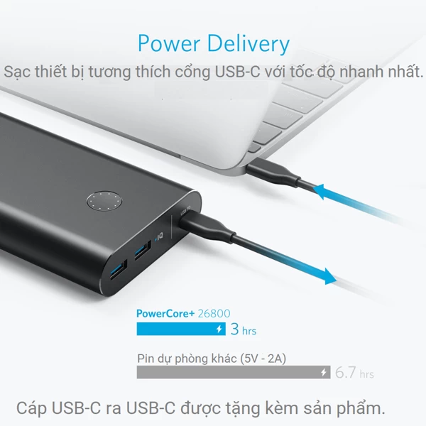 Cổng USB-C 30W hỗ trợ Power Delivery sạc được cả cho Macbook, laptop và các thiết bị tương thích USB-C với tốc độ cao nhất.