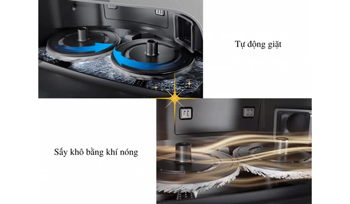 Trạng bị nhiều công nghệ hiện đại như tự động giặt, sấy giẻ lau nhà, thay nước và hút bụi