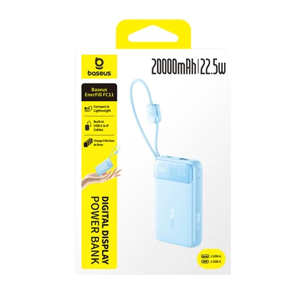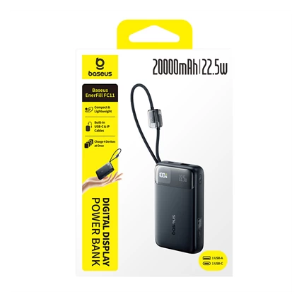 Điểm cộng nổi bật là cáp USB-C và Lightning tích hợp sẵn, giúp bạn sạc nhanh mà không cần mang theo dây riêng, cực kỳ tiện lợi trong mọi tình huống.