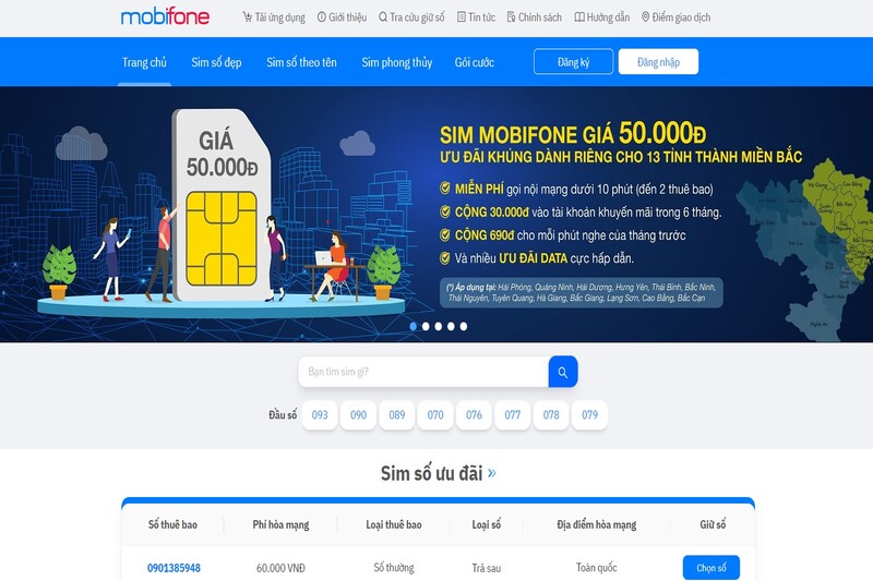 Bước 1: Truy cập vào trang web chính thức của MobiFone hoặc gọi đến tổng đài 1800 8098 để đặt mua SIM trực tuyến.