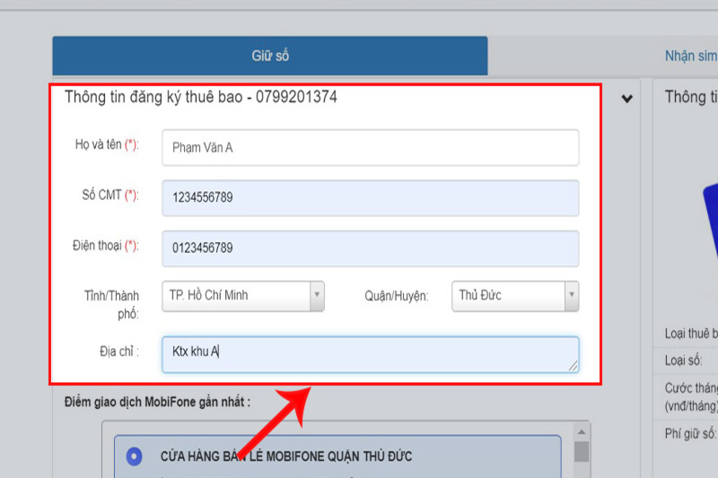 Bước 3: Nhập thông đầy đủ tin cá nhân và địa chỉ đăng ký thuê bao theo yêu cầu. Bạn cần có chứng minh nhân dân hoặc hộ chiếu để đăng ký SIM.