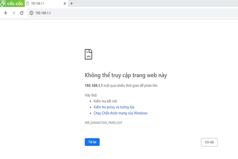 http://192.168.1.1. Lỗi gõ sai phổ biến là 192.168.l.l (dùng chữ L thay cho số 1). - Lỗi 2: Địa chỉ IP của router đã bị thay đổi. Không phải router nào cũng dùng 192.168.1.1. Một số địa chỉ phổ biến khác là 192.168.0.1, 10.0.0.1, 192.168.1.254. Bạn có thể tìm địa chỉ chính xác bằng cách mở Command Prompt (trên Windows) và gõ lệnh ipconfig, sau đó tìm dòng “Default Gateway”.