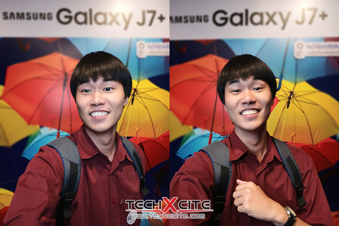 Cũng như J7 Pro, J7+ được trang bị thêm tính năng xóa phông cho ảnh selfie. Tuy nhiên, vì chỉ phụ thuộc hoàn toàn vào phần mềm nên ảnh chụp chỉ ở mức vừa phải. Bạn đọc có thể xem thêm bài so sánh ảnh xóa phông từ J7 Pro và OPPO F3 tại đây.