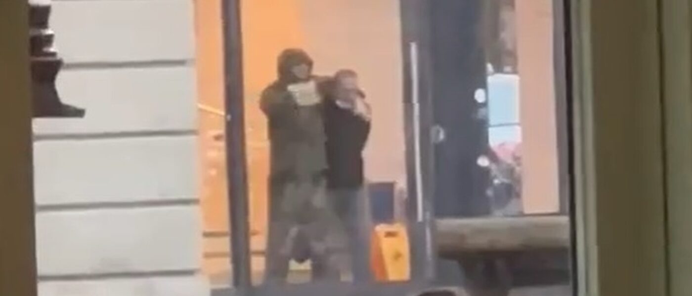 Bức ảnh dưới đây cho thấy kẻ tấn công đang khống chế con tin, mặc một chiếc áo bom liều chết (sau đó được xác nhận là giả). Thủ phạm sau đó bắt đầu đưa ra yêu cầu liên hệ với phương tiện truyền thông địa phương, yêu cầu thanh toán bằng tiền điện tử và đảm bảo an toàn. Đổi lại, các con tin sẽ được giải thoát.