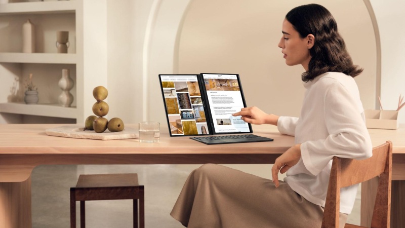 Thiết kế hai màn hình không chỉ mang đến không gian làm việc rộng rãi mà còn cho phép người dùng tận dụng tối đa khả năng đa nhiệm. Bạn có thể dễ dàng mở rộng các ứng dụng, tài liệu hoặc công cụ hỗ trợ trên cả hai màn hình, giúp tăng cường hiệu suất công việc và nâng cao trải nghiệm người dùng. Đồng thời, màn hình Lumina OLED với chất lượng hiển thị tuyệt vời mang đến hình ảnh sắc nét, màu sắc sống động và độ tương phản cao, đáp ứng tốt nhu cầu làm việc và giải trí đa phương tiện.