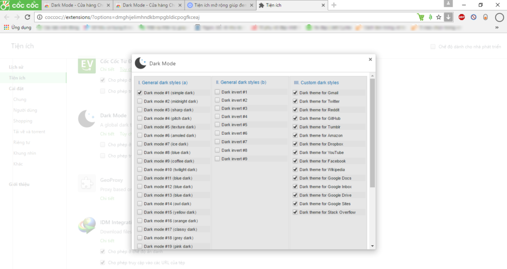 Sau khi tải về, bạn sẽ thấy biểu tượng của chế độ Dark mode ở góc phải bên trên giao diện trình duyệt Web.