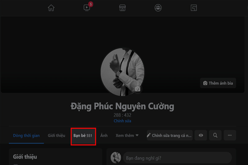 Bước 1: Truy cập vào trang Facebook cá nhân trên máy tính của bạn, chọn mục Bạn bè tại giao diện.
