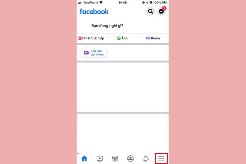 Bước 1: Mở ứng dụng Facebook và đăng nhập tài khoản của bạn trên thiết bị điện thoại. Sau đó vào Menu (biểu tượng 3 gạch ngang ở góc trên bên phải màn hình).