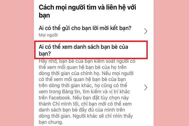 Bước 3: Trong mục Cách mọi người tìm và liên hệ với bạn, chọn Ai có thể xem danh sách bạn bè của mình.