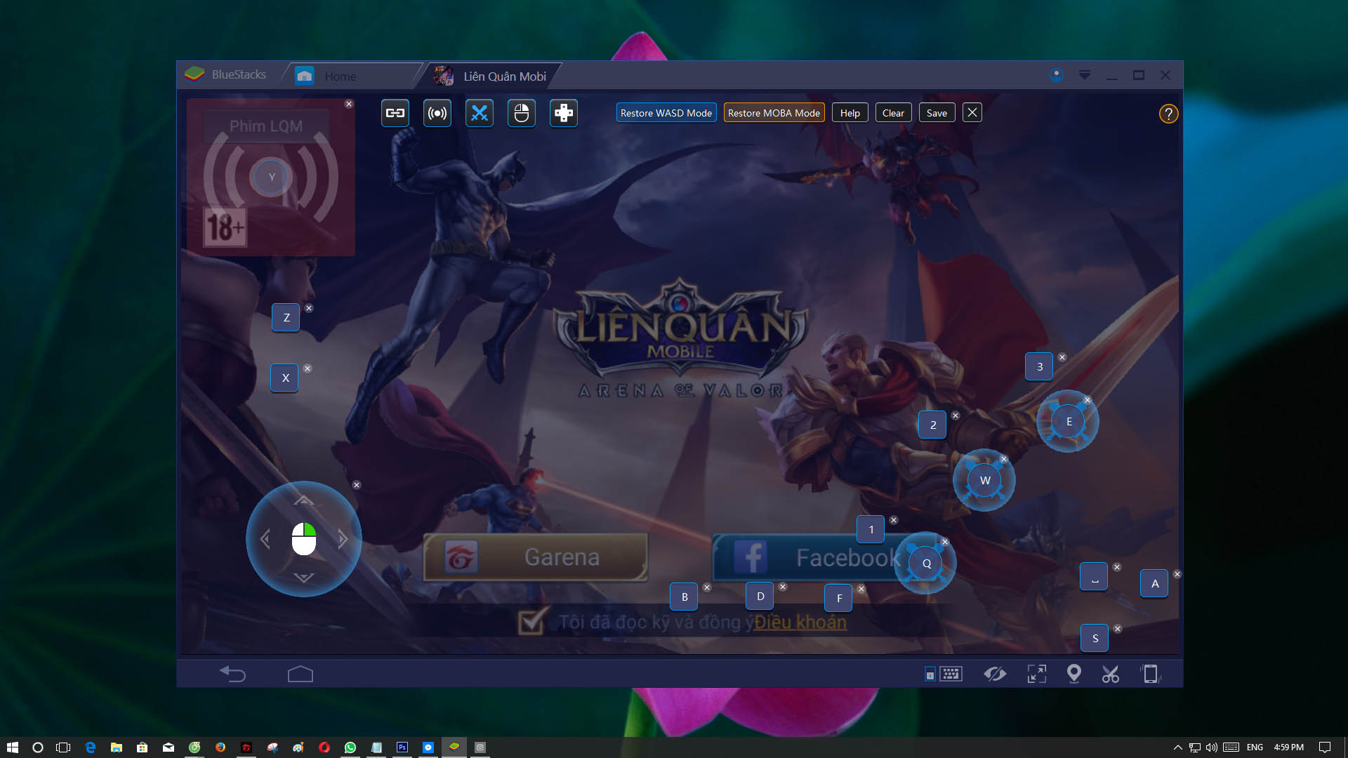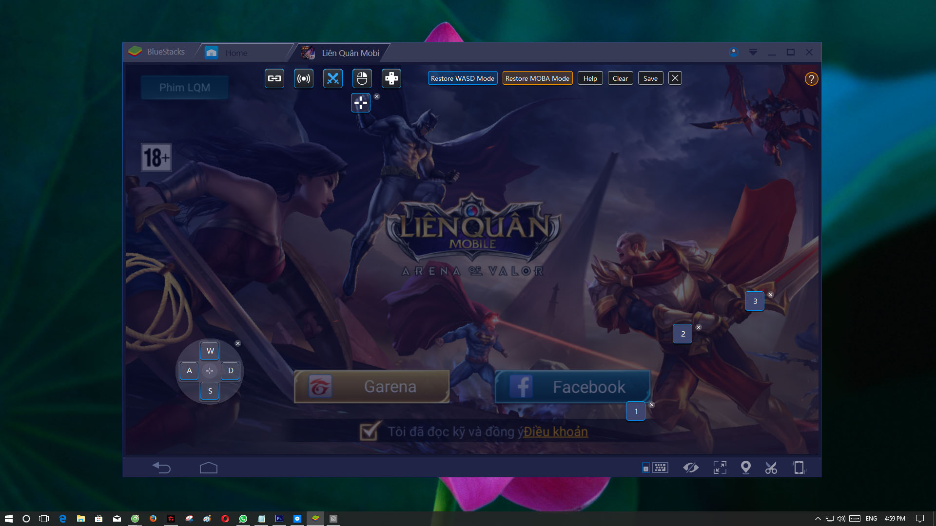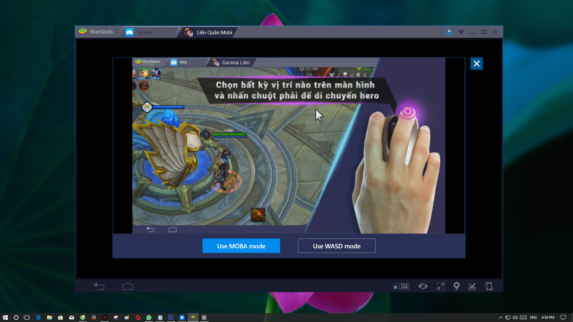 - Trong quá trình tải game, BlueStacks sẽ cho bạn hai cách để chơi game đó là dùng 4 nút W-A-S-D để di chuyển hoặc dùng chuột.