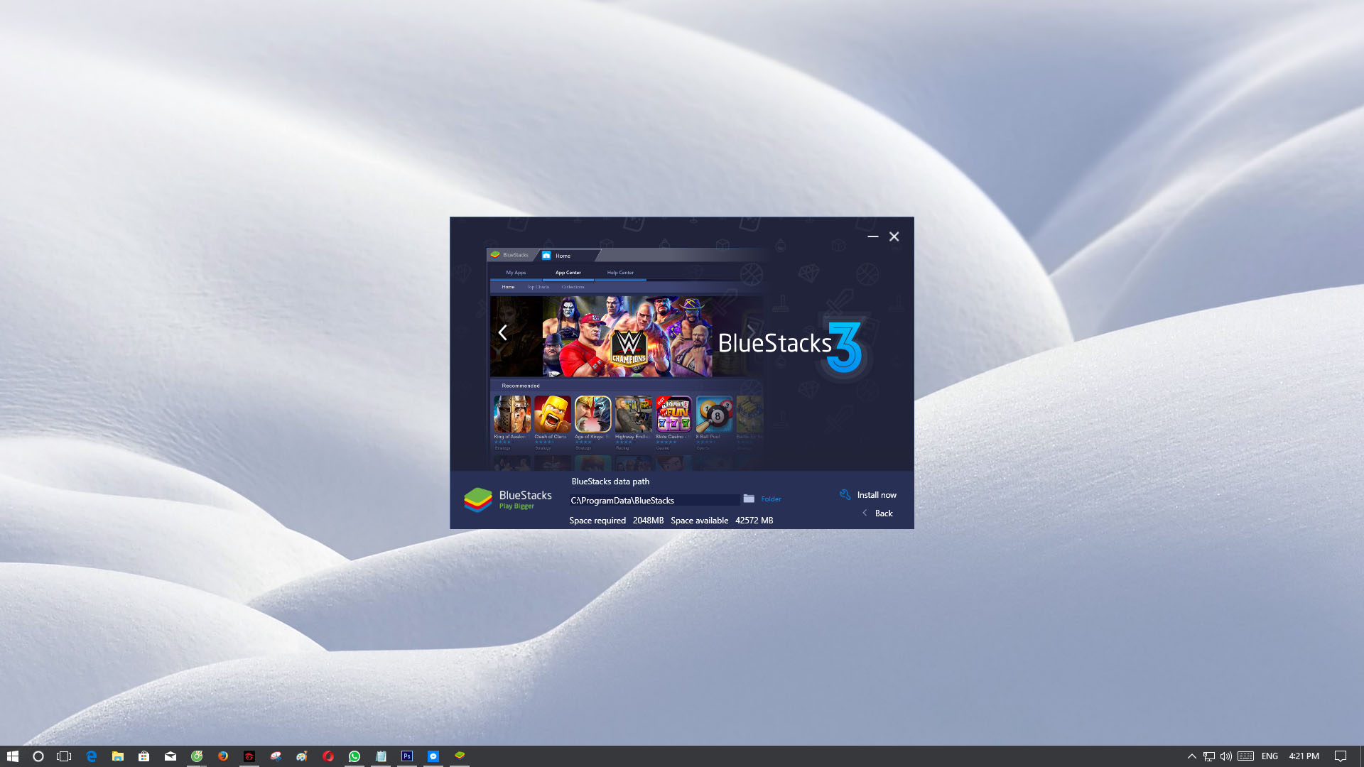 Đầu tiên, bạn cần phải tải về phần mềm BlueStacks tại đây. Sau đó, các bạn mở file vừa tải về lên và cài đặt theo các bước như sau: