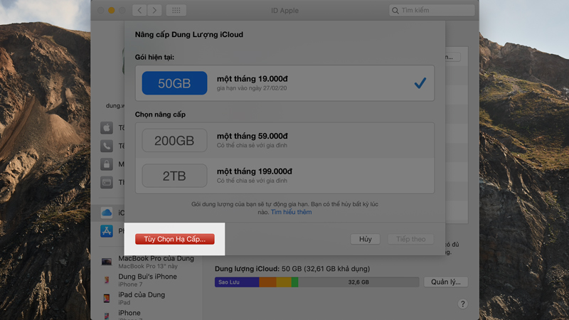 Nếu chỉ muốn ở hạ cấp dung lượng iCloud, bạn hãy chọn gói phù hợp với nhu cầu và nhấn Xong ở bước 7.