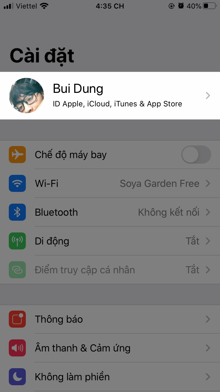 - Nhấn vào tên của bạn ở trên cùng.