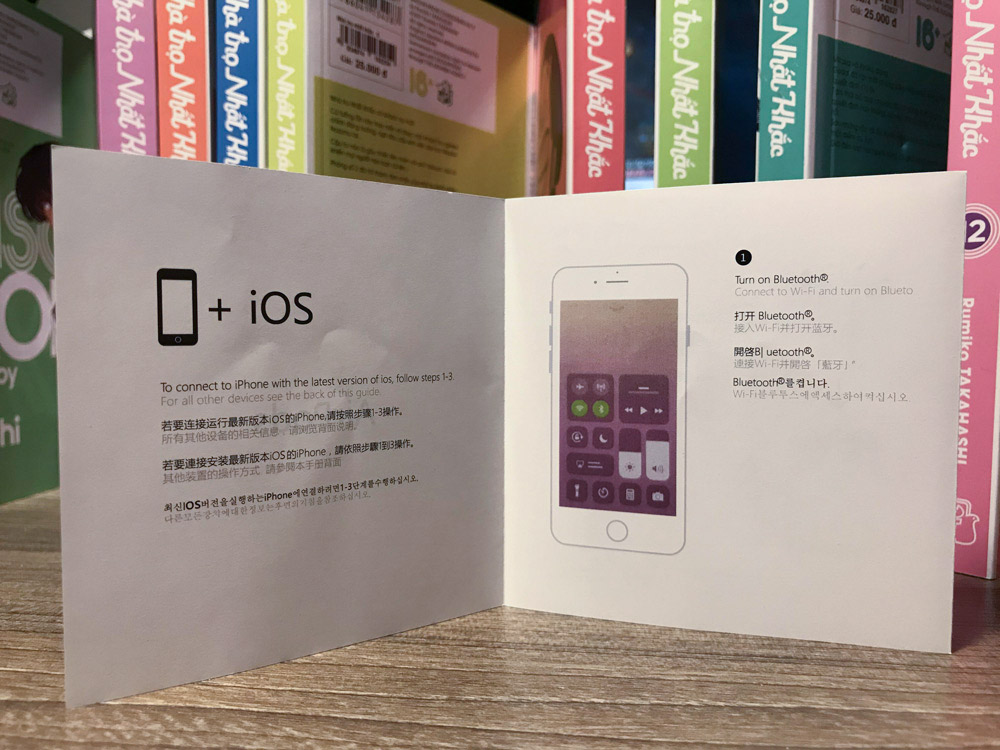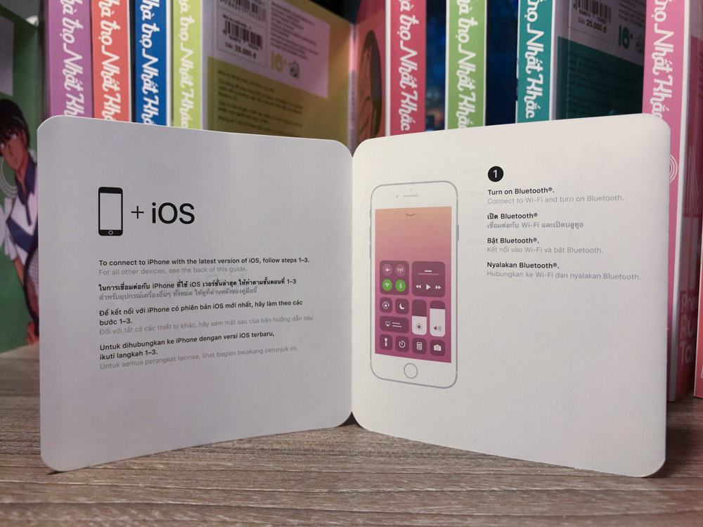 Giấy ‘Hướng dẫn sử dụng’ của AirPods Fake chỉ có một tờ duy nhất và thể hiện bằng ngôn ngữ Trung Quốc. Còn AirPods xịn có nhiều hơn, in cả tiếng Việt và nhiều thứ tiếng khác nhau.