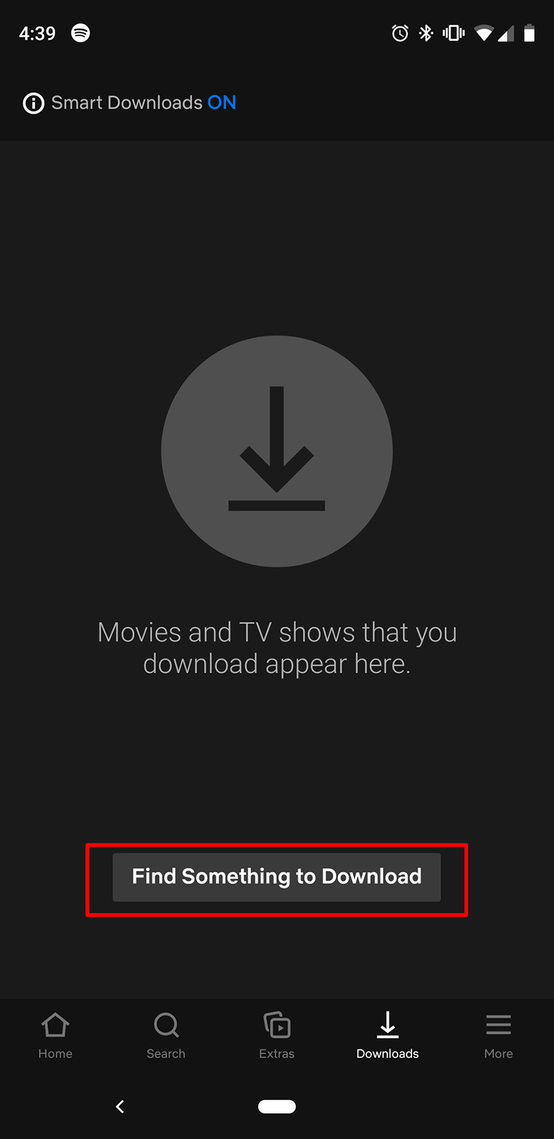 Để hỗ trợ tìm nội dung thì Netflix cũng cung cấp nút Find Something to Download hoặc Find More to Download nhằm giúp bạn tìm thấy những bộ phim, TV có thể tải xuống. Phần này chứa danh sách các bộ phim và chương trình được tuyển chọn, mặc dù bạn không thể tìm kiếm từ đây.