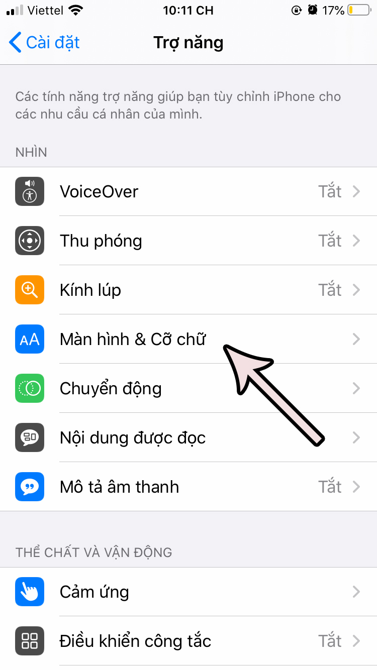 - Nhấn chọn Màn hình & Cỡ chữ