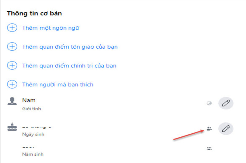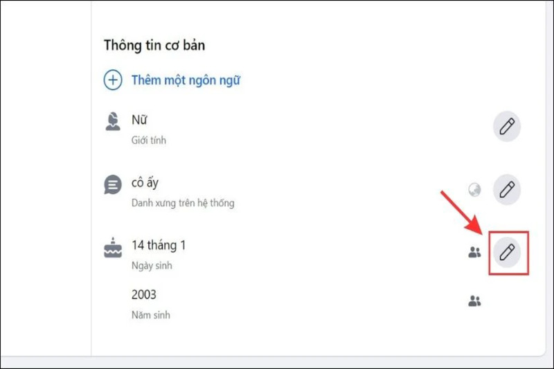 Bước 2: Kéo xuống phần Ngày sinh và Năm sinh, nhấn vào biểu tượng chỉnh sửa ở bên phải.