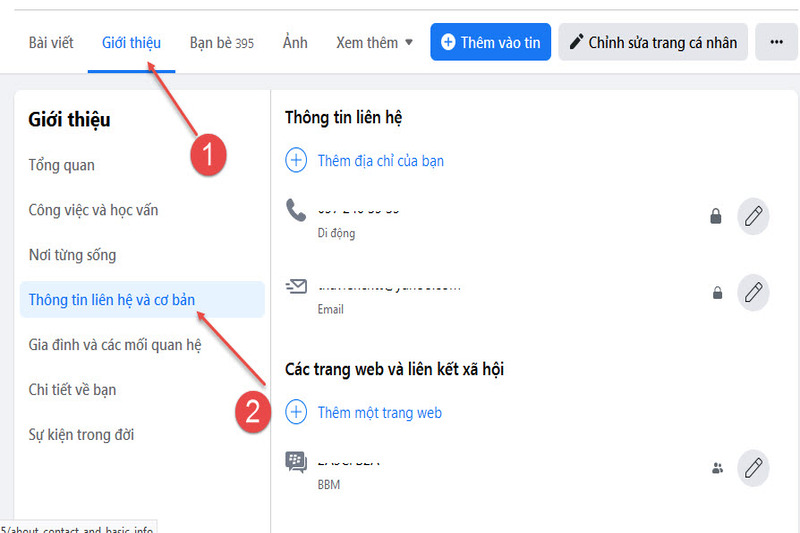 Bước 1: Truy cập vào trang cá nhân của bạn trên Facebook, chọn mục Giới thiệu và Thông tin liên hệ và cơ bản.