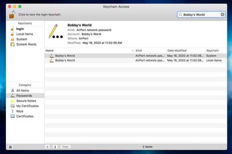 Đây là ứng dụng có sẵn trên macOS, giúp lưu trữ các thông tin cá nhân như tên người dùng, mật khẩu của các trang web và các mạng Wifi. Bạn có thể làm theo các bước sau để xem mật khẩu Wifi bằng Keychain Access: