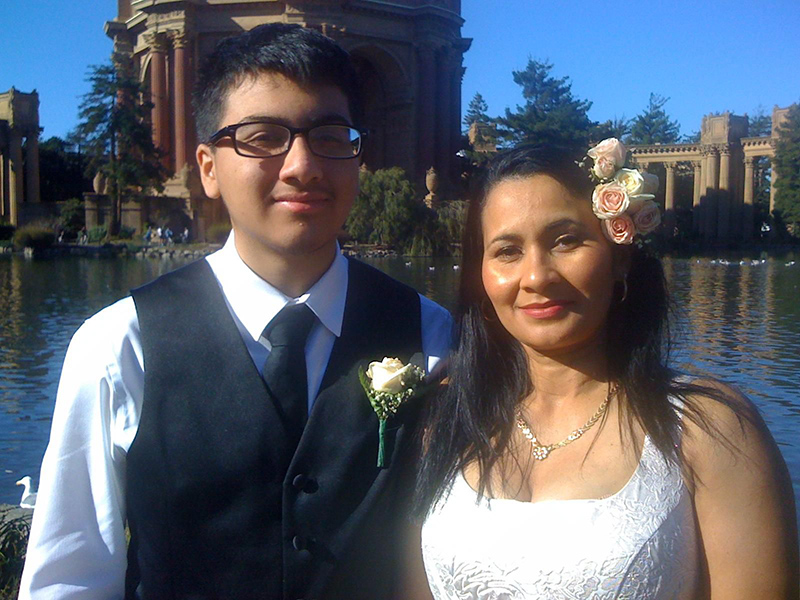 Dưới đây là ảnh chụp một cặp đôi mới cưới bởi chiếc iPhone đời đầu ở chế độ gốc; không hiệu ứng gì (ảnh trái) và qua chế độ chân dung trên iPhone X (ảnh phải).