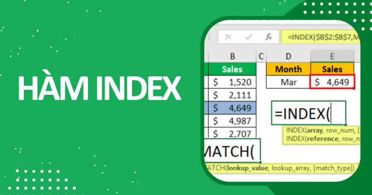 Hàm INDEX trong Excel là hàm tra cứu trả về giá trị tại vị trí cụ thể (hàng/cột) trong mảng ...