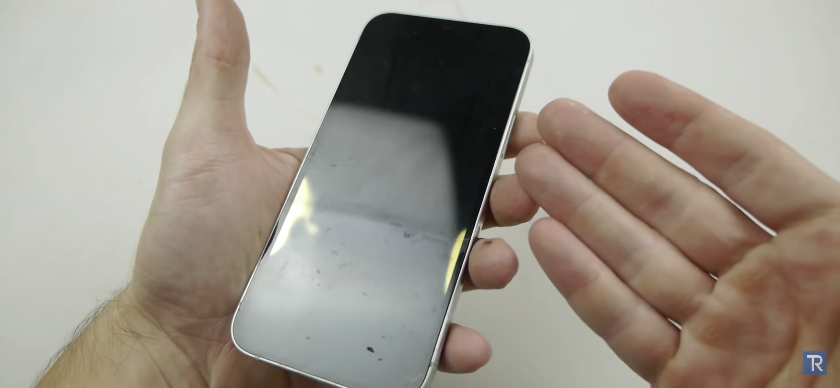 Tại thử nghiệm này, chàng trai người gốc Ukraine đã mang tới một bình axit sulfuric cùng hai chiếc điện thoại là iPhone 12 và Galaxy S20. Hai chiếc máy được thả vào hai bình, rồi đổ thêm axit, một chút oxi già và một miếng bọt biển.