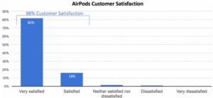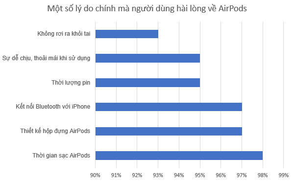 Cụ thể, theo một cuộc khảo sát được thực hiện bởi công ty Creative Strategies and Experian, có tới 98% trong tổng số 942 người được hỏi cho biết họ hài lòng với bộ tai nghe không dây do “nhà Táo” sản xuất. Đi sâu vào phân tích hơn, có 82% trong số đó trả lời rằng họ “cực kỳ hài lòng” về sản phẩm này, và 16% chọn “hài lòng” là câu trả lời của mình. Toàn bộ 2% còn lại bao gồm các phản hồi “không hài lòng cũng không thất vọng” và “thất vọng”. Không có ai đánh giá rằng AirPods là một sản phẩm “cực kỳ thất vọng”.