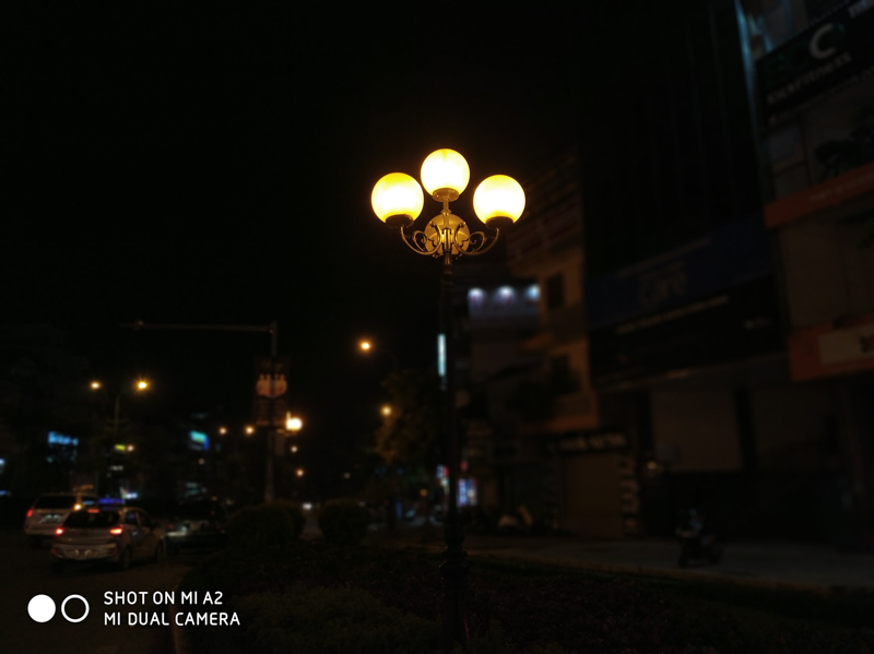 Khả năng chụp thiếu sáng của Mi A2 khá ấn tượng khi cho ra những bức ảnh sáng và đủ chi tiết. Tuy xuất hiện các vùng noise nhẹ ở những vùng tối nhưng không ảnh hưởng quá nhiều đến chất lượng ảnh. Các bóng đèn cho ra các tia sáng tuy không dài nhưng cũng thể hiện khả năng bắt nét của camera kép 12MP (khẩu độ f/1.75) + 20MP (khẩu độ f/1.75) của Mi A2.