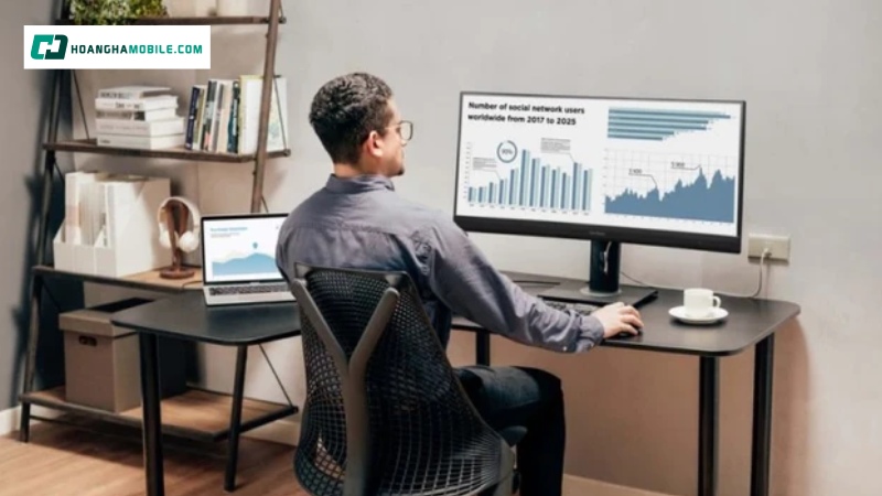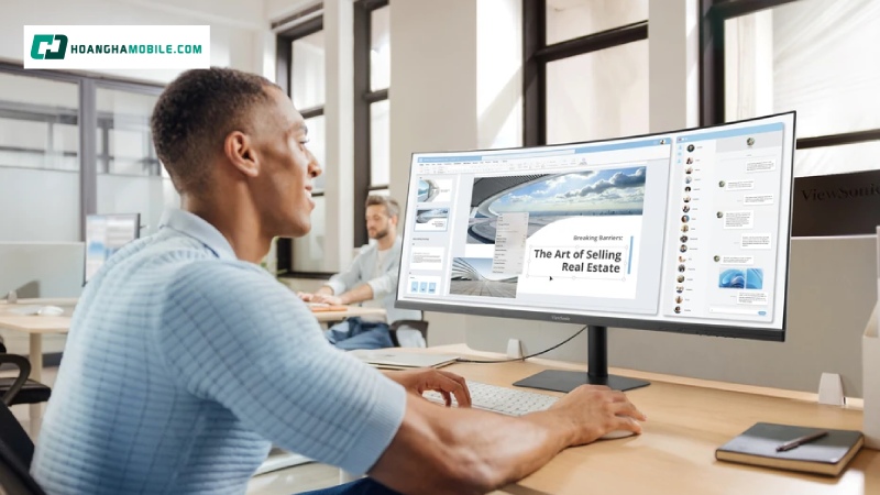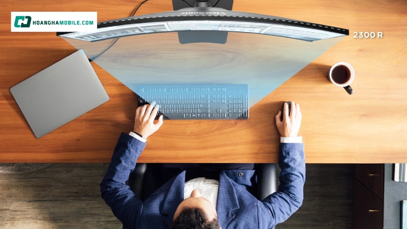 Đặc biệt, độ cong 2300R vừa phải của màn hình đóng vai trò quan trọng trong việc tối ưu trải nghiệm xem. Độ cong này không chỉ giúp ôm trọn tầm nhìn mà còn hạn chế biến dạng hình ảnh ở các cạnh, đồng thời giảm mỏi mắt khi sử dụng lâu dài, mang lại sự thoải mái tối đa cho cả ngày làm việc hoặc giải trí kéo dài