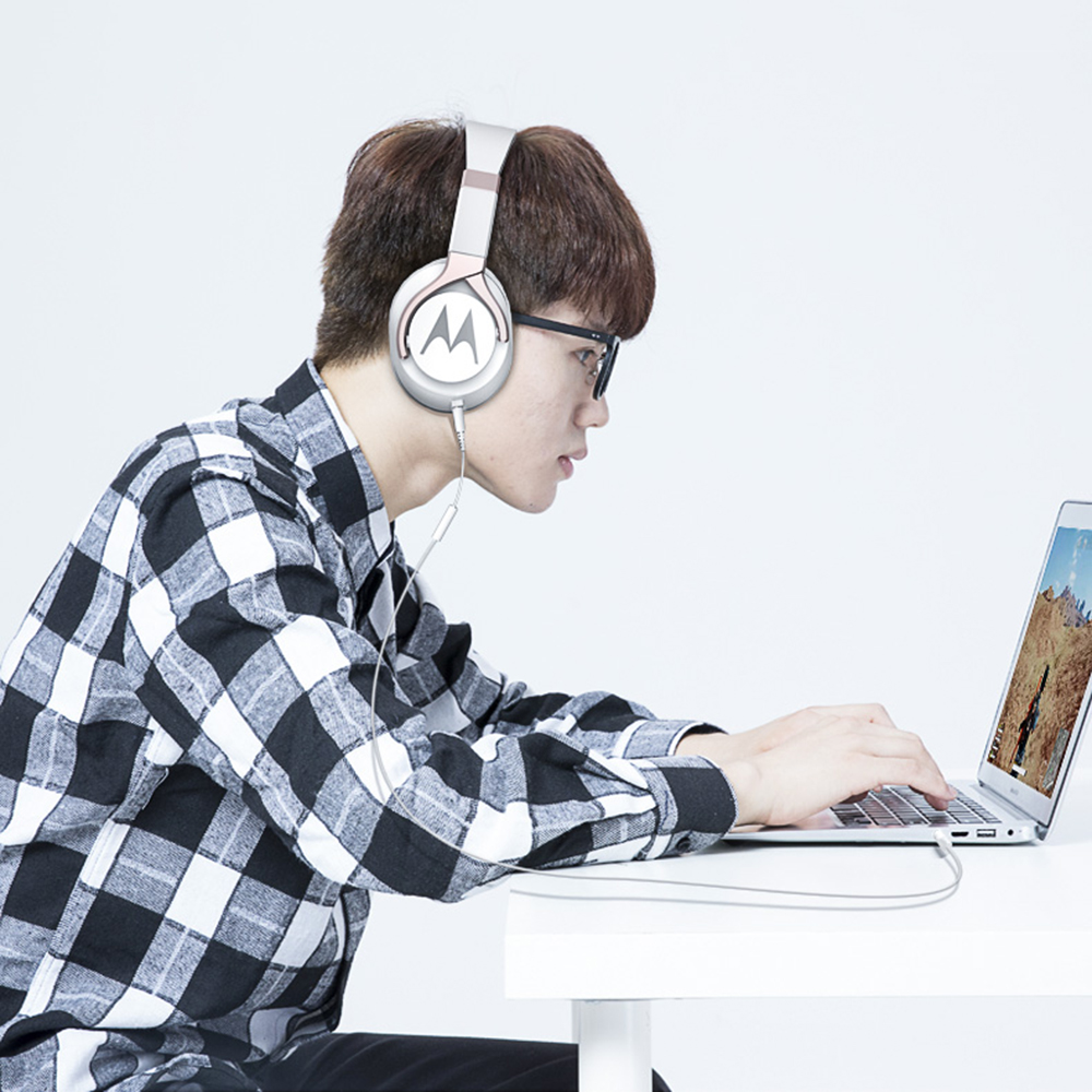 Ngay lập tức, thiết kế khá lớn sẽ là điều mà người dùng nhận thấy ngay từ sản phẩm này. Nhiều người sẽ liên tưởng tới các mẫu tai nghe chơi game trong quán Net, nhưng cảm nhận là Motorola Pulse Bass 200 Wired sẽ nhẹ hơn khá nhiều. Trọng lượng của sản phẩm chỉ tầm 242 gram nên dù khá to nhưng không có cảm giác nặng khi đeo lâu. Phần tai có thể xoay 90 độ.