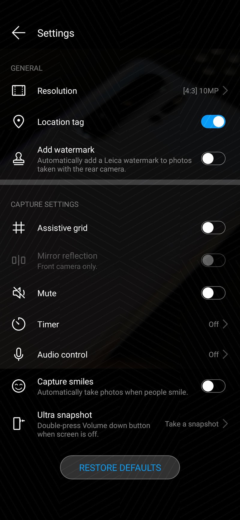 Ứng dụng camera trên EMUI được thay đổi về font chữ và biểu tượng khác xa so với phong cách Lei mà chúng ta đã thấy trong những năm trước.
