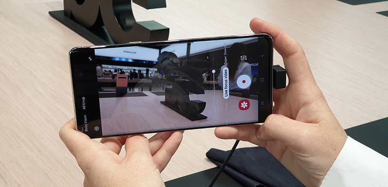 Sự bổ sung chính là máy ảnh thứ tư, đây là một cảm biến trường sâu 3D ToF, độ phân giải hQVGA (240 x 160 pixels), khoảng 0.0384MP. Máy ảnh này có khả năng nhận diện độ sâu và khuôn mặt cực nhanh và chính xác, phù hợp với những ứng dụng 3D, AR. Trong thực tế thì nó dễ áp dụng nhất vào tính năng chụp ảnh Live Focus. Thậm chí, Galaxy S10 5G còn có thể quay video xoá phông nữa.
