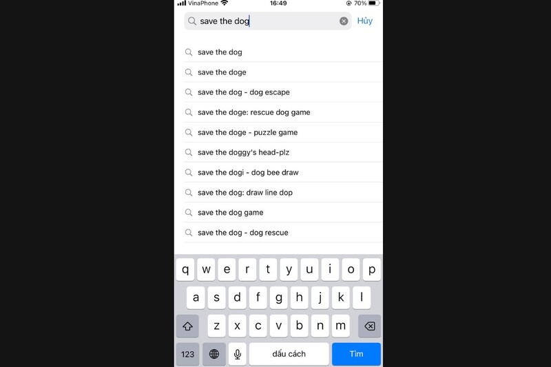 Bước 1: Truy cập vào cửa hàng ứng dụng có sẵn trên điện thoại của bạn. Sau đó sử dụng thanh tìm kiếm và nhập tên game Save The Dog.