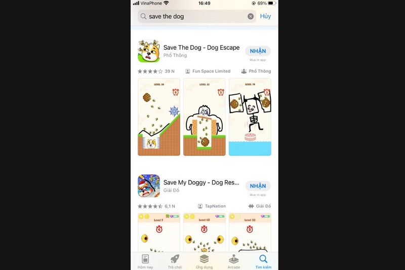 Bước 3: Chọn game Save The Dog hiển thị từ kết quả tìm kiếm.