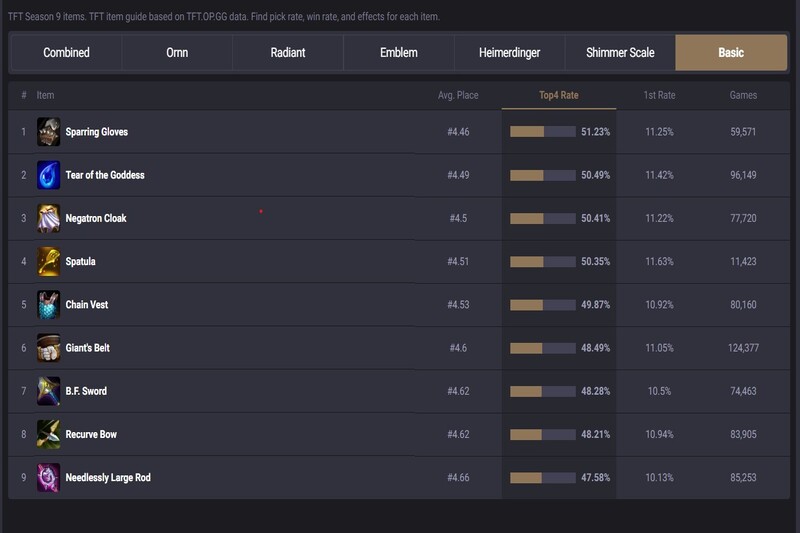 Có tất cả 10 loại trang bị cơ bản trong DTCL như sau: