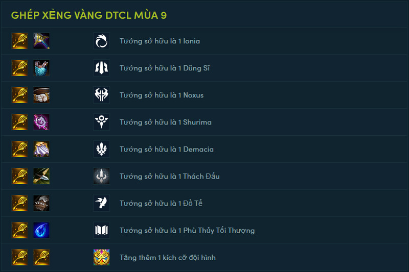 Việc ghép đồ trong Đấu Trường Chân Lý (DTCL) mùa 9 là một yếu tố then chốt để quyết định chiến thắng hay thua. Nó mang đến cho nhiều trang bị mới, cũng như thay đổi cách thức ghép đồ và hiệu ứng của chúng. Bạn sẽ phải nắm rõ các công thức ghép đồ, cũng như biết cách lựa chọn và sử dụng các trang bị phù hợp với các tướng, hệ phái và tình huống của bạn. Từ đó biết cách tận dụng các nguồn trang bị khác nhau như vòng xoay may mắn, vòng chọn tướng, vòng chọn trang bị hoặc các vòng bãi quái tại đây.