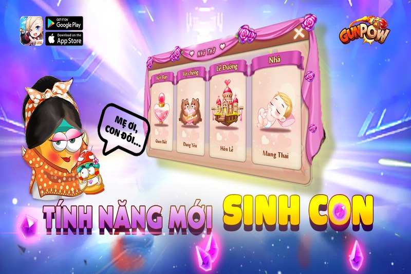 Đây là một tính năng độc đáo và mới lạ trong game GunPow. Với tính năng này, bạn có thể kết hôn với người bạn yêu thích và cùng nhau sinh ra những đứa con xinh xắn. Bạn có thể chăm sóc, nuôi dưỡng và huấn luyện con của bạn để giúp chúng phát triển và trở thành những xạ thủ tài năng. Bạn cũng có thể cho con của bạn tham gia vào các hoạt động khác trong game như đấu hạng, đồng tâm chiến, xạ thủ liên đấu,… để giúp chúng có những trải nghiệm thú vị và học hỏi thêm kinh nghiệm.