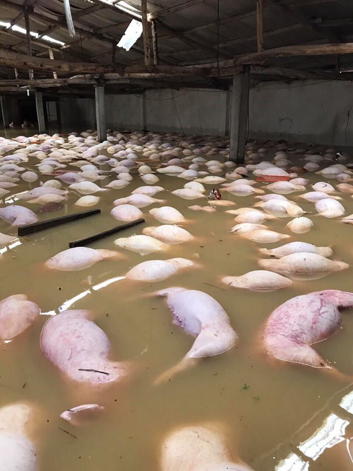 Hiện tại, có ít nhất 4000 con lợn chết đuối trong bão lũ. Thậm chí, theo thống kê của công nhân của trang trại con số này đã lên tới hơn 5000. Cảnh tượng những con lợn chết trương phềnh trên mặt nước đã khiến không ít người xót xa.