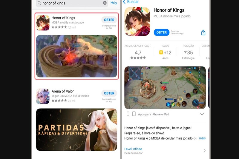 Bước 3: Tìm kiếm Honor of Kings trên App Store. Nhấn tải xuống và thưởng thức trò chơi sau khi quá trình tải xuống hoàn tất.