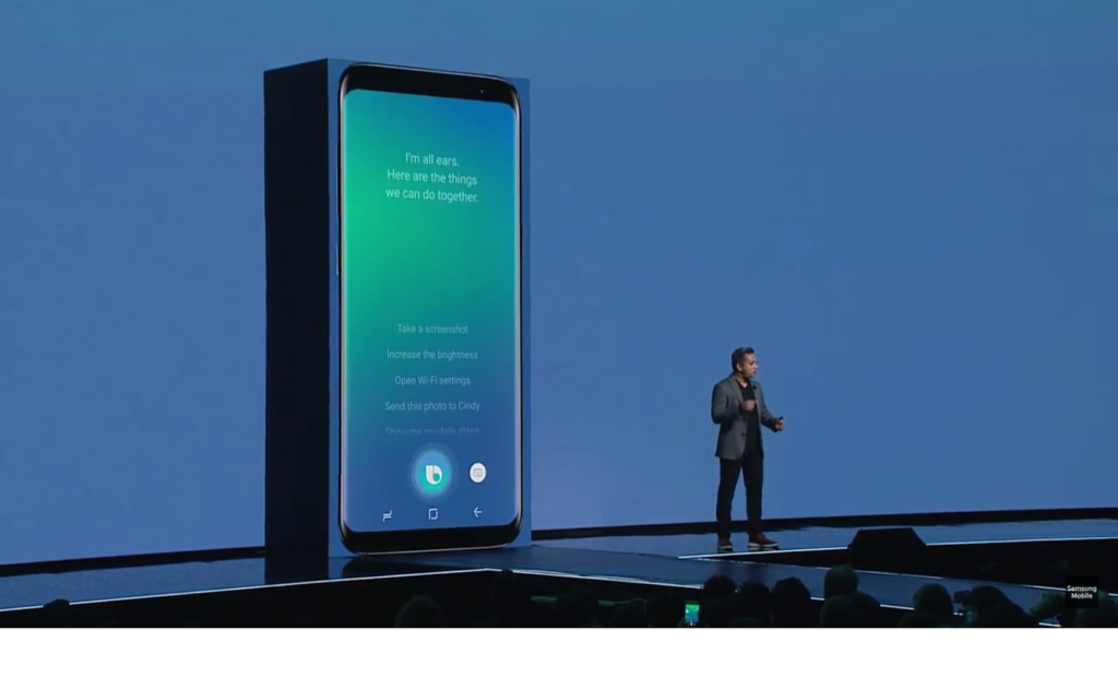 10h38: Bixby là trợ lý ảo mới của Samsung sẽ có mặt trên bộ đôi smartphone này với một phím Đa dụng riêng ở gần phím Âm lượng, trợ lý ảo này rất thông minh và có thể tương tác với người dùng thông qua nhiều cách thức khác nhau, không chỉ từ giọng nói