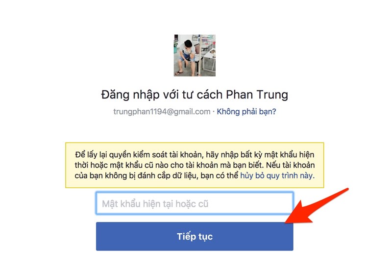 Nhập mật khẩu cũ trước khi bị hack.
