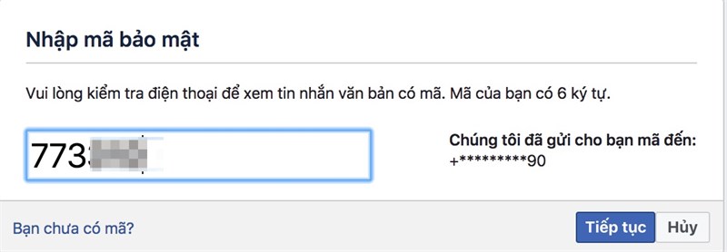 Facebook sẽ gửi cho bạn một mật mã, nhập vào như hình dưới để khôi phục tài khoản Facebook.